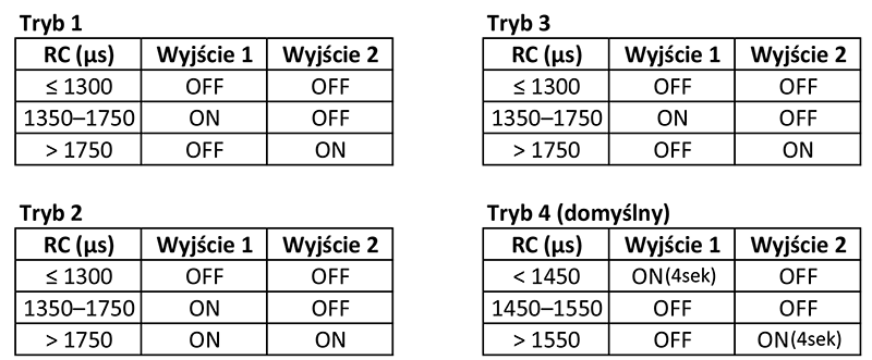 Dodatkowo włącznik może pracować w 4 różnych trybach: